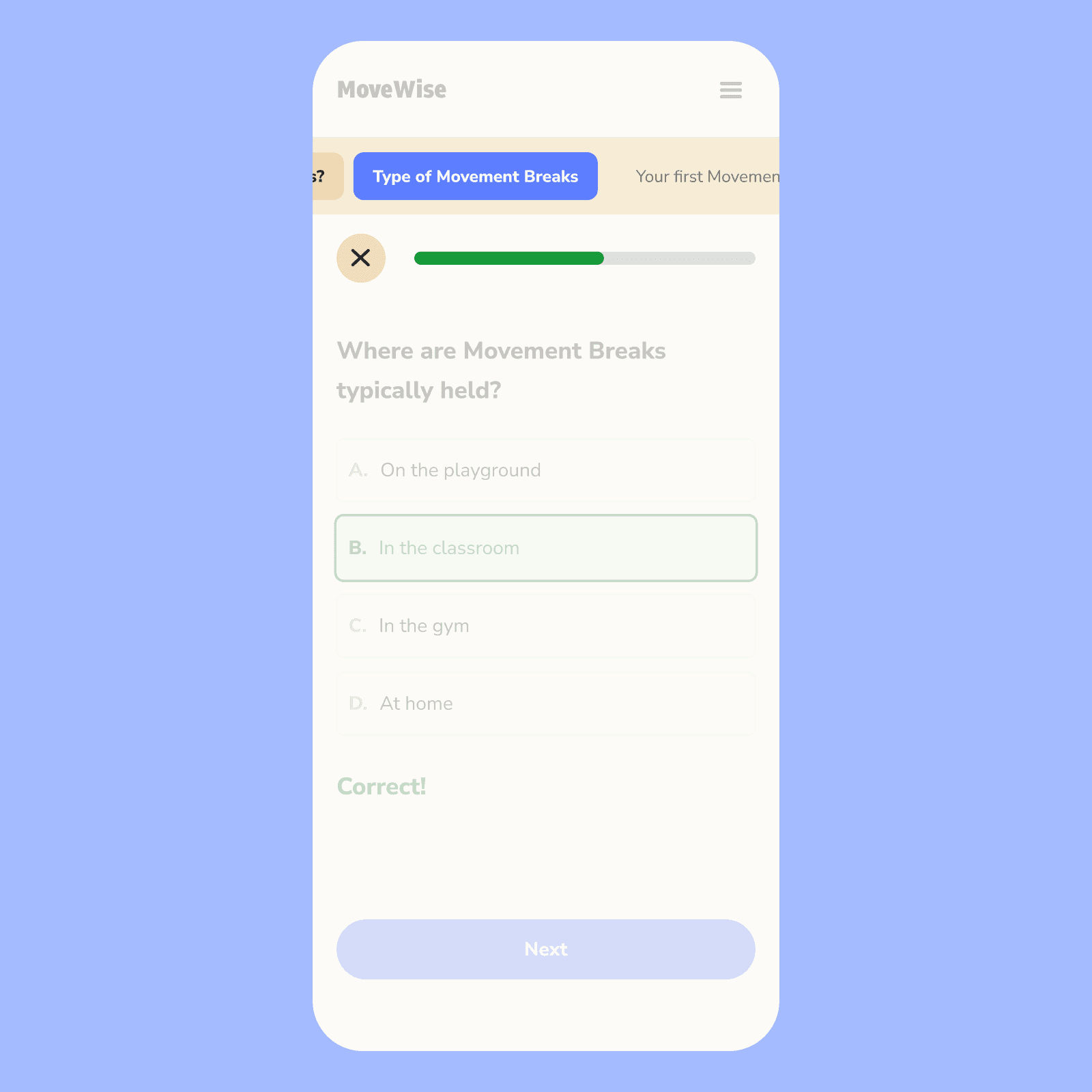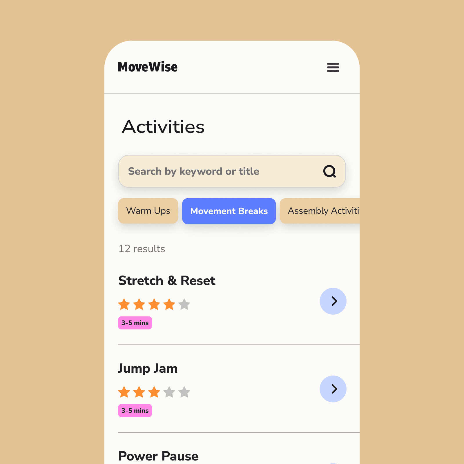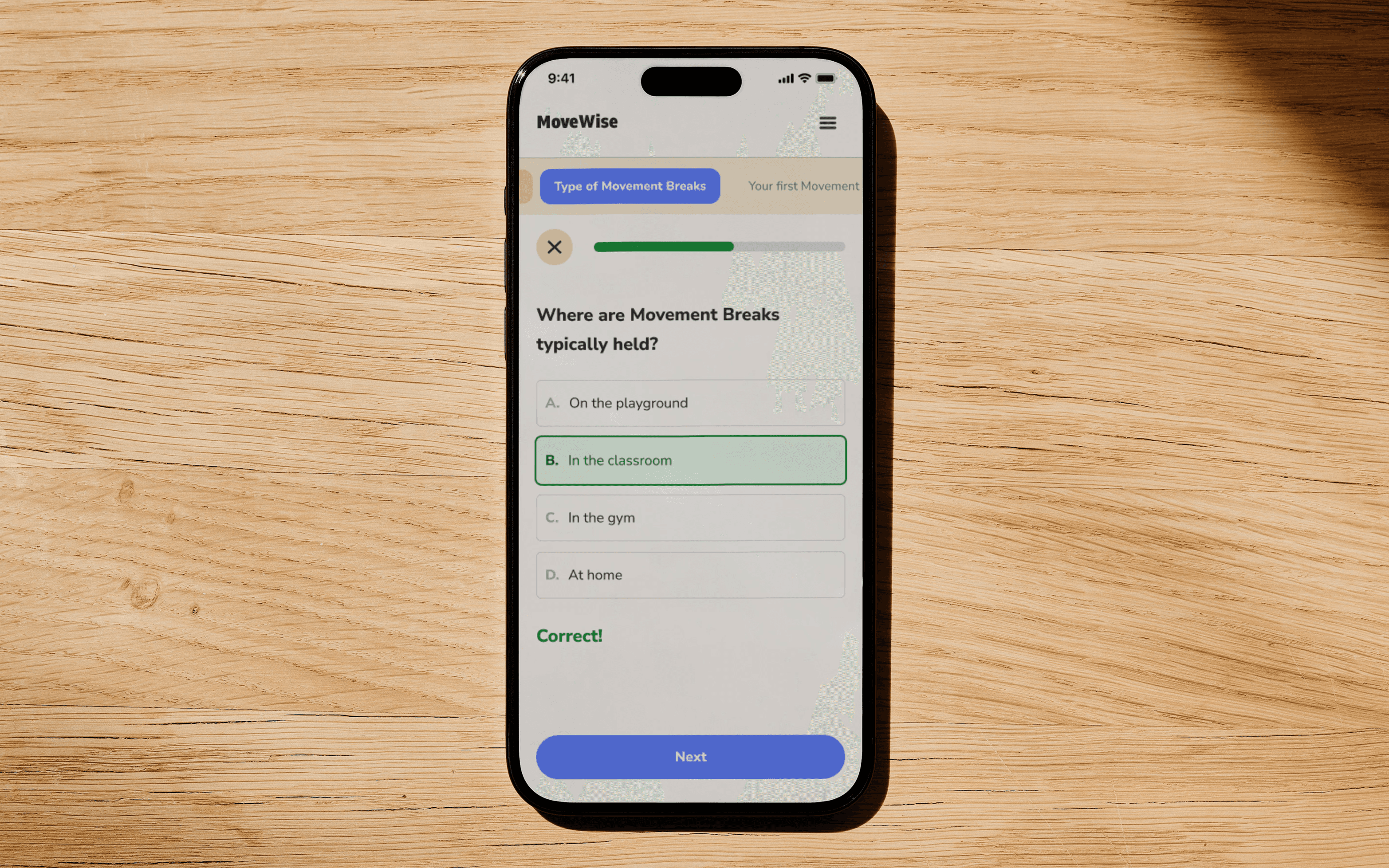 After a successful pilot led by a team of researchers, our client set out to scale a new physical education program to schools nationwide. The concept for MoveWise, a digital platform designed to help teachers integrate the program into their classrooms, was already in place.