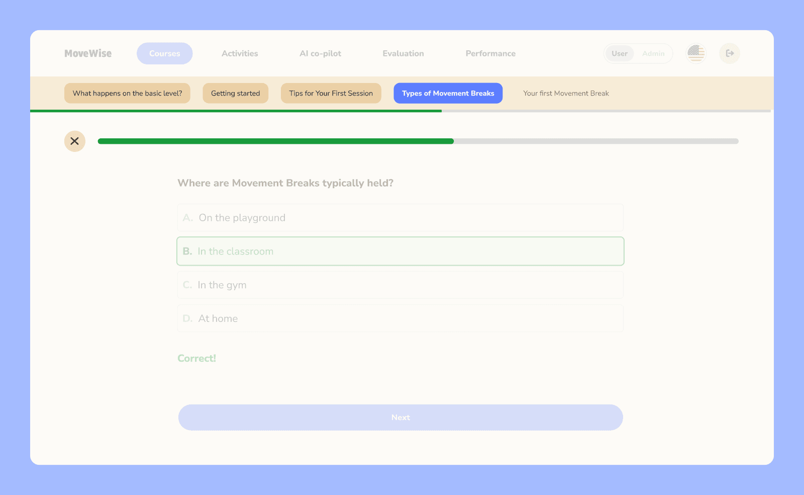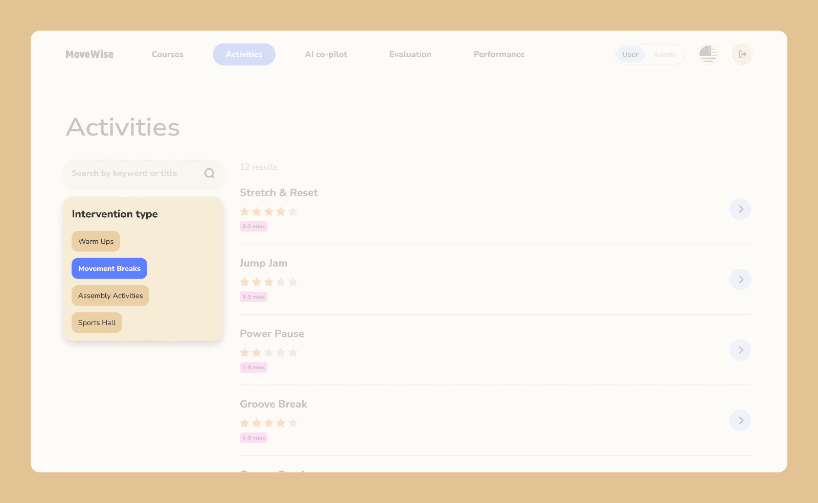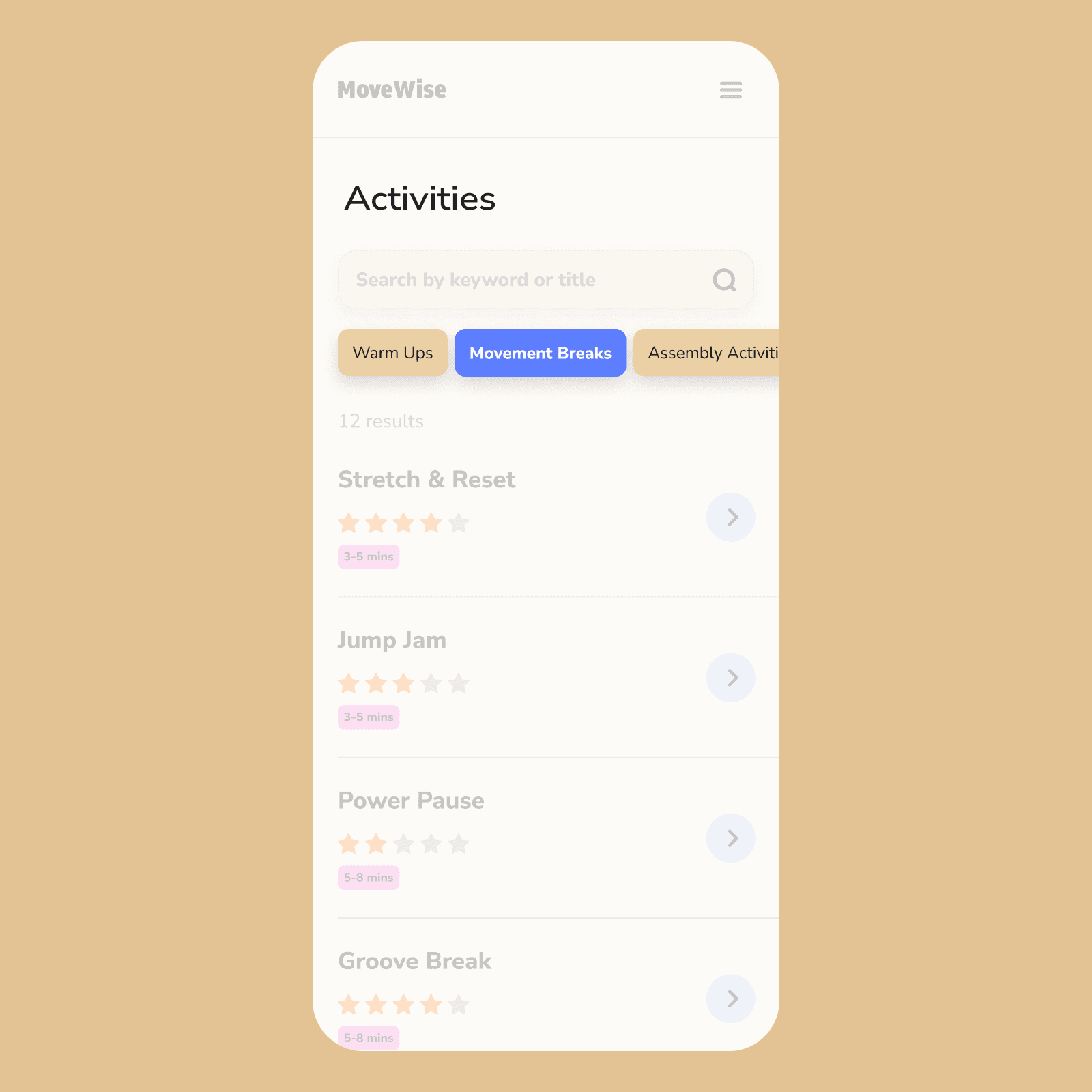 After a successful pilot led by a team of researchers, our client set out to scale a new physical education program to schools nationwide. The concept for MoveWise, a digital platform designed to help teachers integrate the program into their classrooms, was already in place.