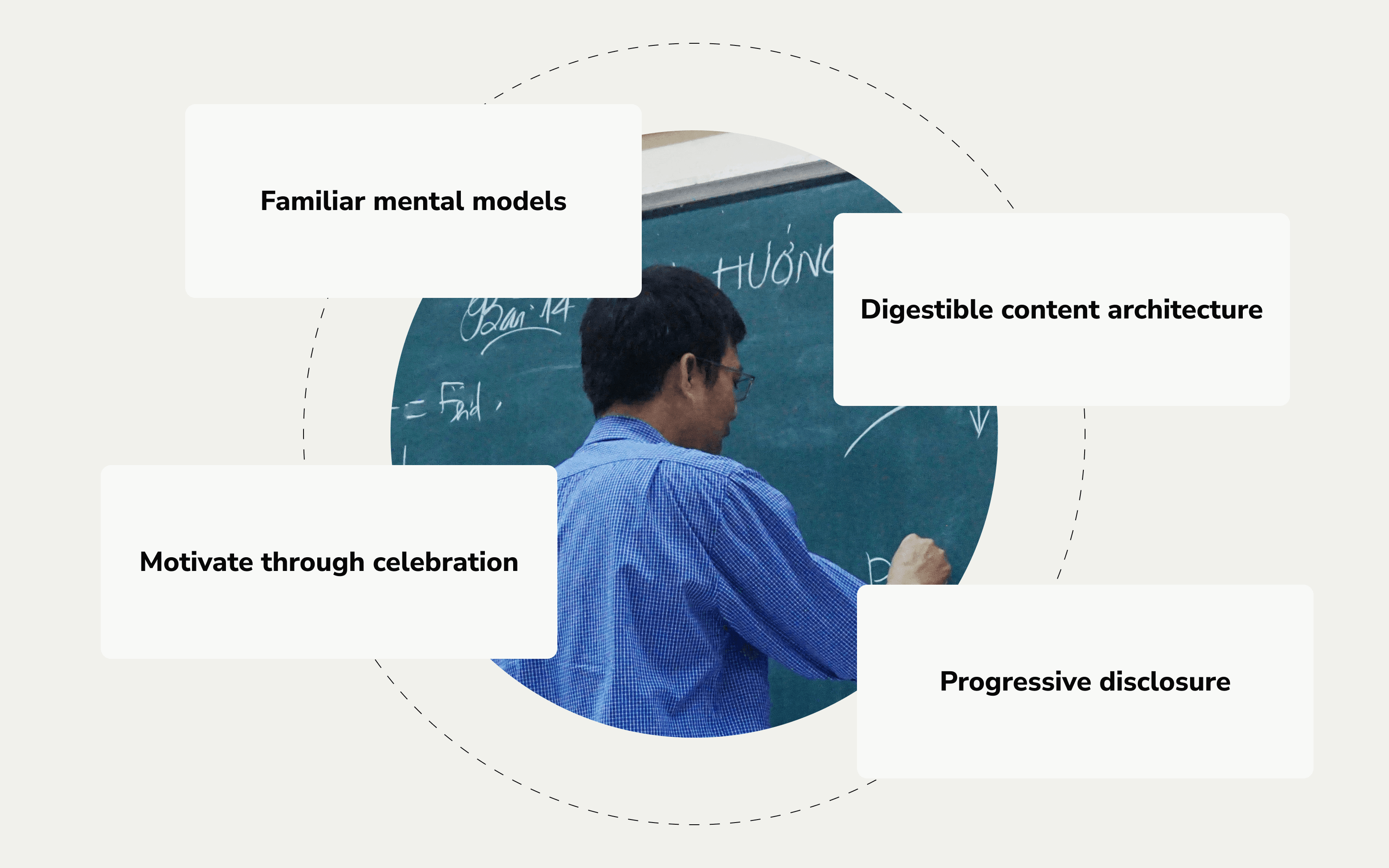 We compress lessons to under five minutes and make user progress visible, giving teachers a sense of control and forward momentum.
