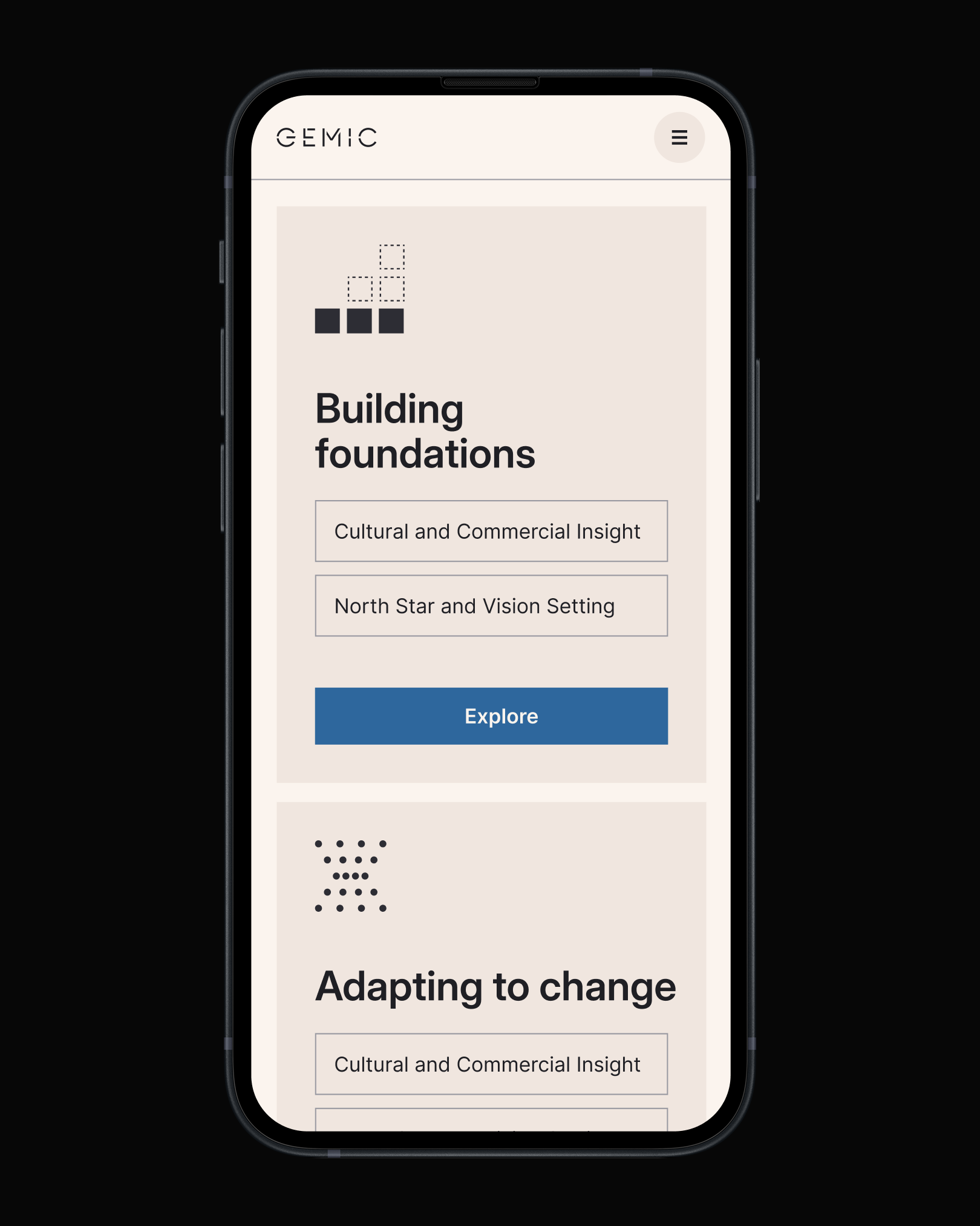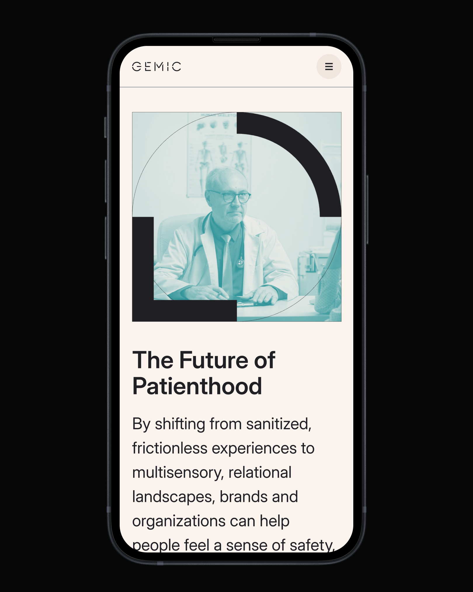 The visual system was built around the core tension at the heart of Gemic’s work — the meeting of raw human insight and rigorous strategic analysis. That duality became the engine of the identity. Textures, candid imagery, and collages sit in deliberate contrast with precise geometry and minimal, disciplined compositions. The result is a design language that makes Gemic’s value not just visible, but felt.