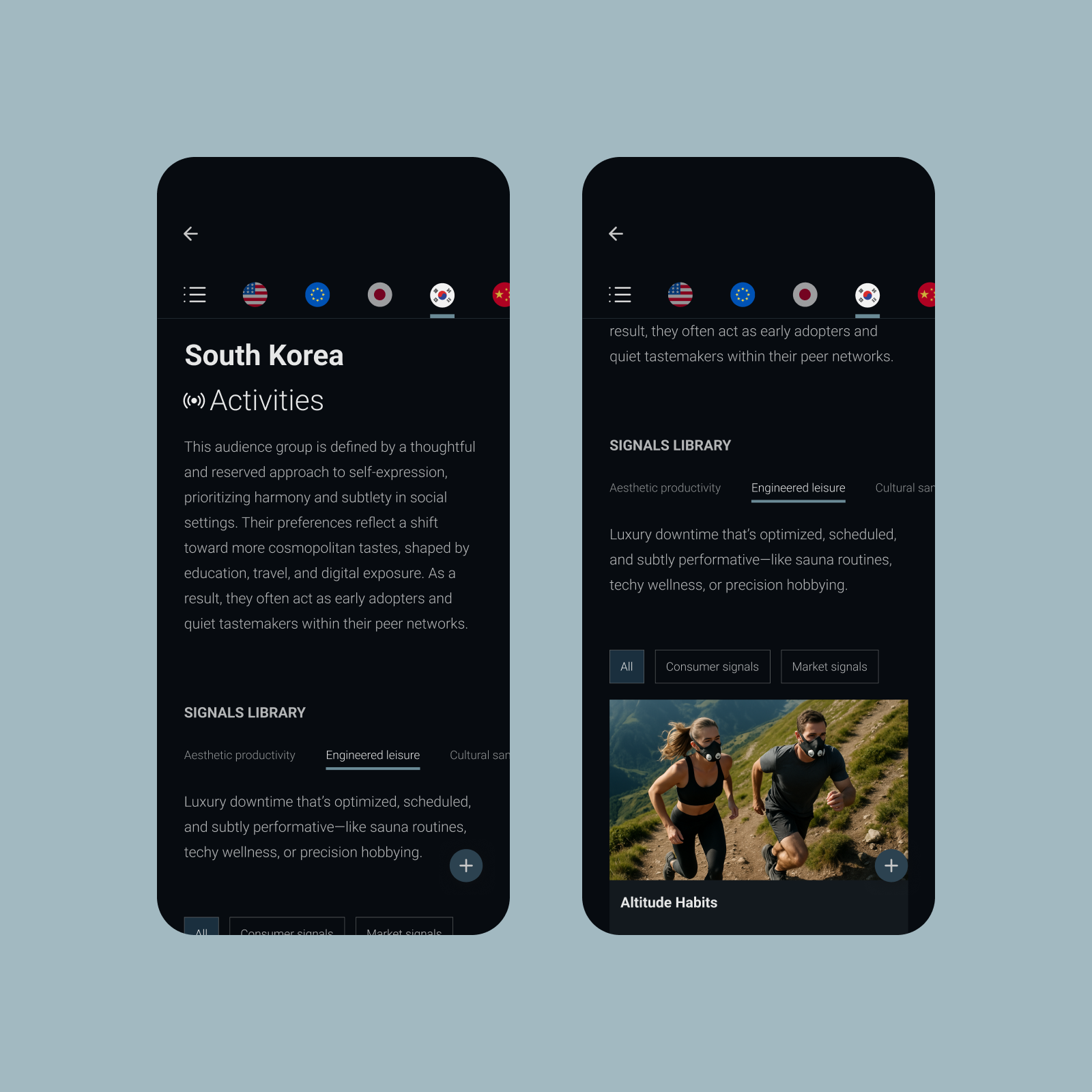 Working closely with strategists and researchers, we built a modular design system with interactive frameworks tailored to the team’s mental models. The system transformed raw data from six global regions into a clear, visually engaging experience.