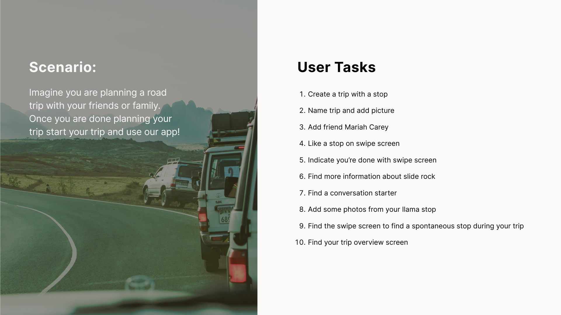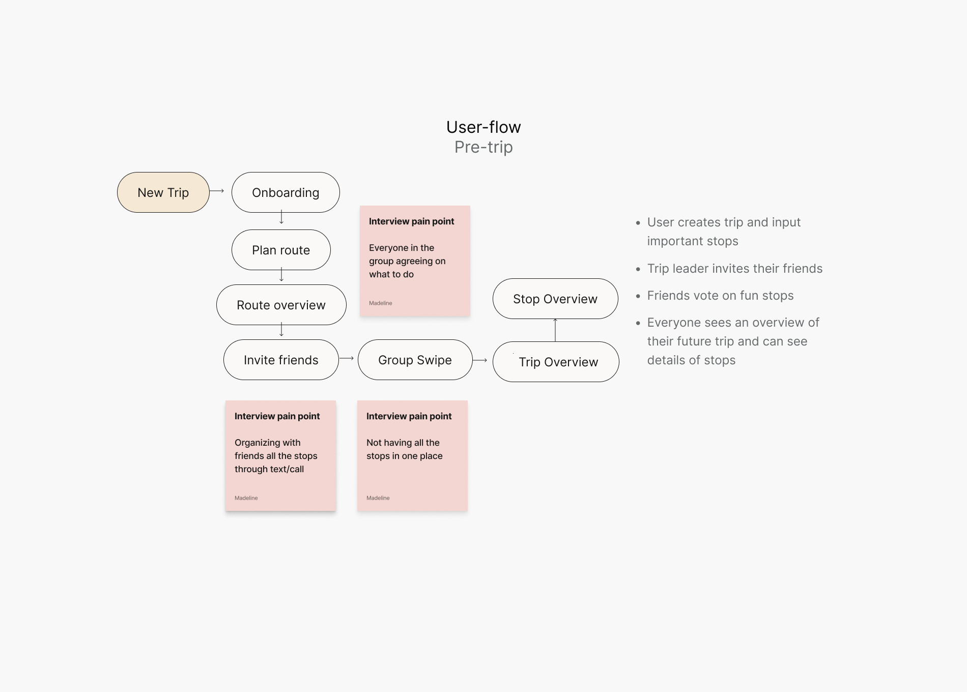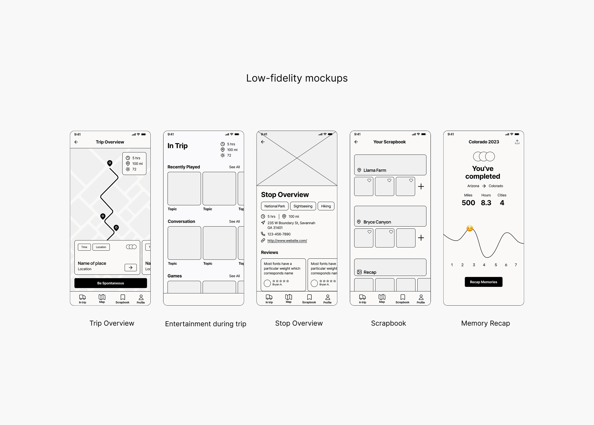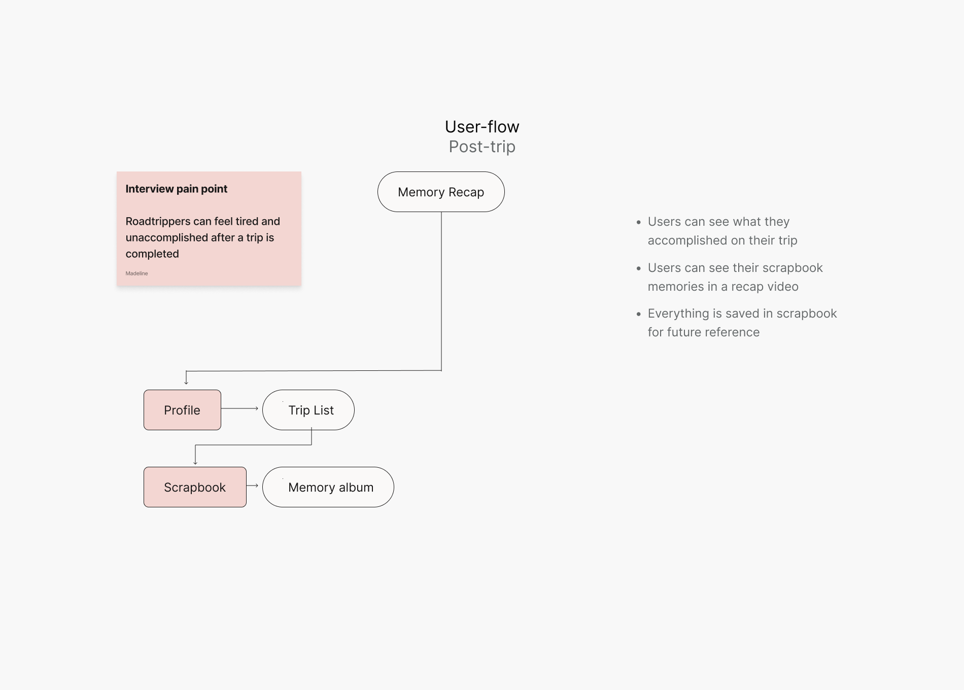 We conducted user interviews to understand people’s motivations for taking road trips, their favorite moments, and the challenges they faced along the way. We learned that travelers valued the emotional richness of the journey — especially the spontaneous, quirky discoveries along the road. One participant shared, “On my road trip, there was a junkyard right next to the highway where a guy collected junk and built insane 50-foot sculptures. It was my favorite part of the trip.”