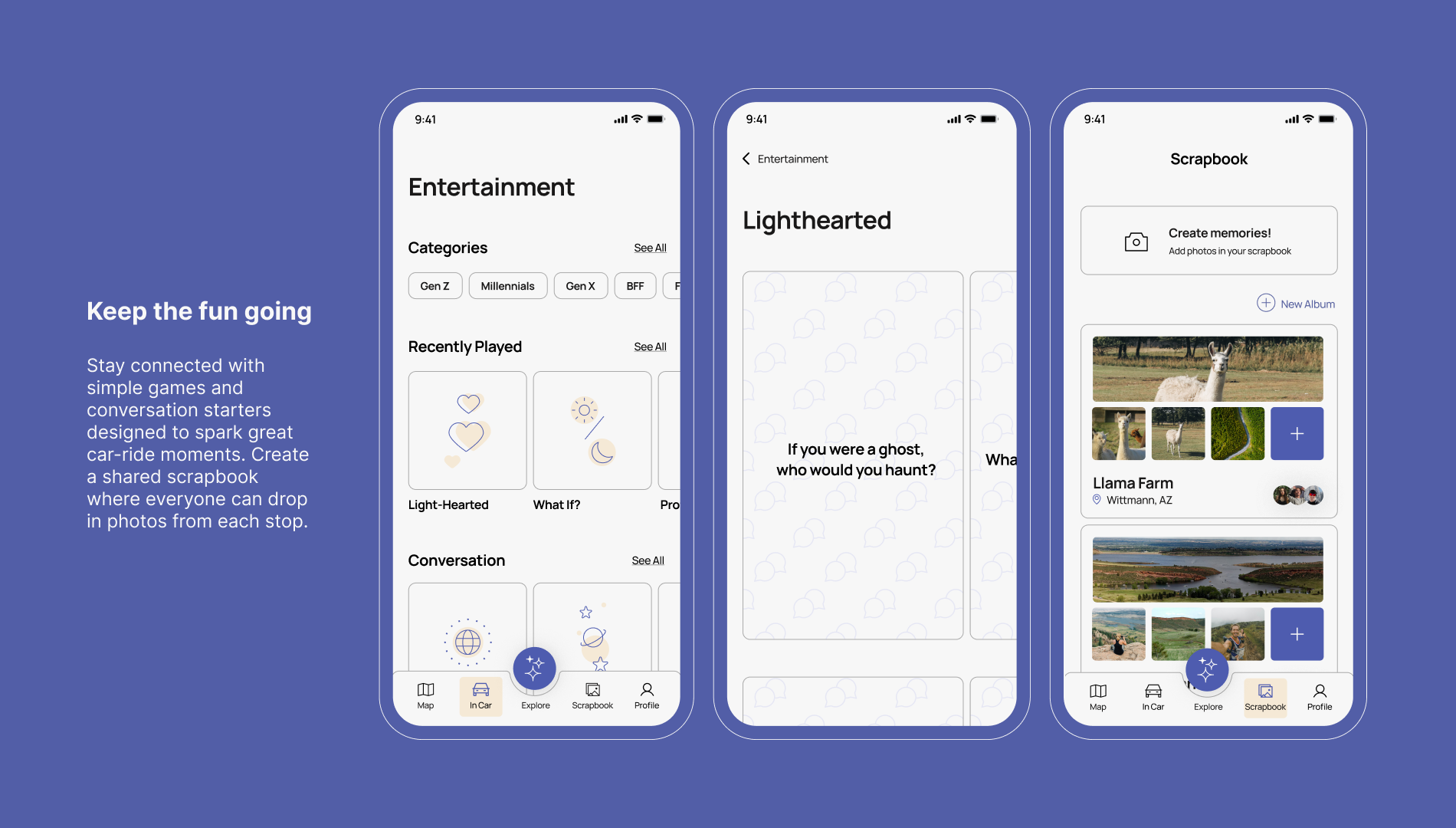 Yet while millions turned to the open road, the digital tools supporting them hadn’t evolved. Most road trip apps still prioritized efficiency and navigation over the magic that makes these journeys memorable. This project explores how we reimagined a mobile experience that brings back the spontaneity, conversation, and wonder of the road trip.